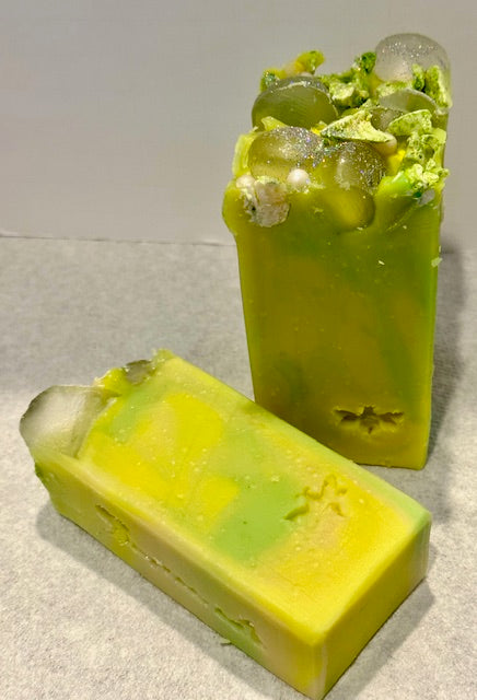 When I went to Jamaica there was a soda that the locals were drinking called "Ting" which is a lightly sparkling citrus cocktail chameleon made with the zing of real grapefruit and a dash of glorious Jamaican sunshine. Jam-packed with the refreshing taste of paradise. It's the coolest Jamaican experience and when I finally got a chance to taste it, I understood why. The taste was so refreshing, juicy and "tart". It was like an awakening that energized me. Of course, I naturally made a soap to share the experience! Ruby red grapefruits have a sparkling zing with tart and tang that we all love. This bar smells like a freshly cut, juicy grapefruit.