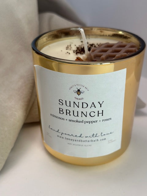 Sundays are usually lazy, do-nothing days for people to mentally prepare for Monday. This is one reason it can be so challenging to get out of bed when Sunday rolls around. But then, you hear someone say “bottomless mimosas'' and it’s enough to get you up and ready. There’s something about bowls of strawberries, plates of pancakes and don’t forget all the bacon, omelets, and waffles you get to enjoy during your Sunday brunch too! Shared with those who you love in spite of the week’s imperfections. The aroma alone is a gentle massage to your soul. Let's get brunch! This Sunday Brunch candle combines all of the best things about dining together with friends or family. Delicious aromas of mimosas, maple syrup-covered pancakes, and a light floral note emitted by the centerpiece decorative touches!